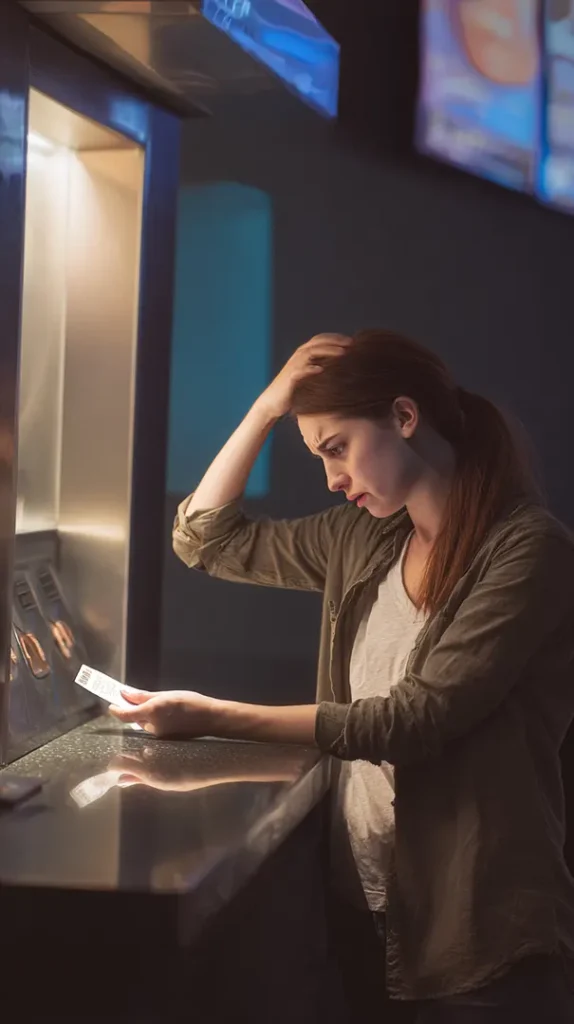 Se le cae la tarjeta, siente la mirada de la taquillera, se disculpa casi inaudiblemente, sintiéndose cada vez más torpe. Al alejarse, la embargan las ganas de llorar.